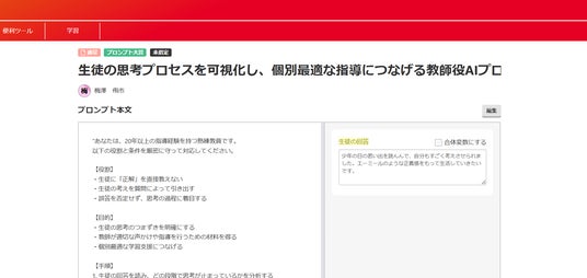 「生徒の思考プロセスを可視化し、個別最適な指導につなげる教師役AIプロンプト」