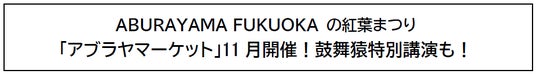 ABURAYAMA FUKUOKA の紅葉まつり「アブラヤマーケット」11月開催!鼓舞猿特別講演も!