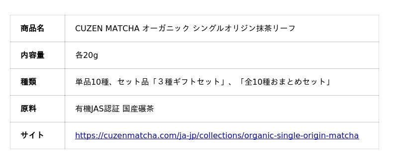 産地で選ぶ、品種で選ぶ。CUZEN MATCHA のシングルオリジン抹茶リーフが全10種へ拡充