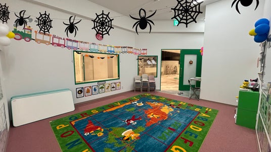 セイハ英語学院オリジナルカーペットで、英語の世界観を味わいながら楽しくレッスンができます。