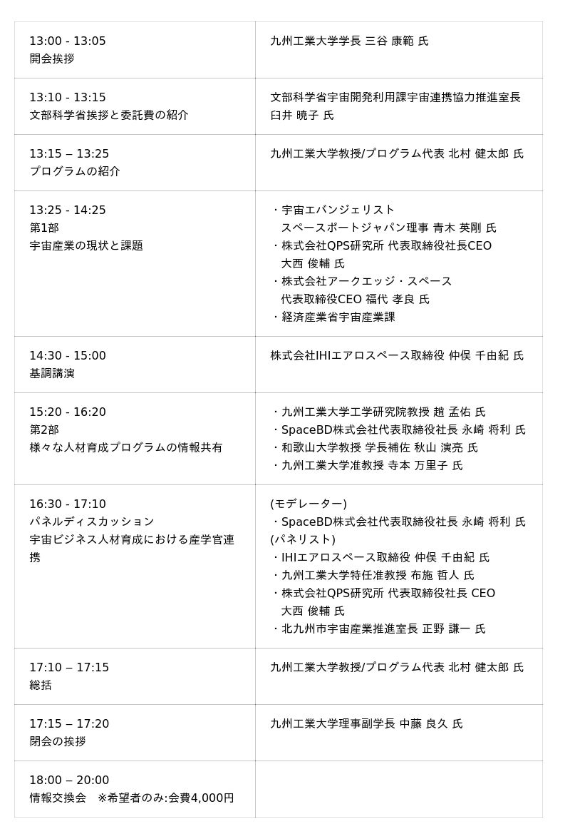 (九州工業大学主催)「宇宙ビジネスCTOを目指す人材育成エコシステムの構築プログラム キックオフシンポジウム」開催のお知らせ