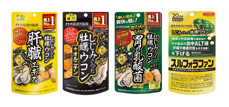 お客様が目的に合わせて選べるよう、シリーズ品の開発に注力しています。2020年には「しじみの入った牡蠣ウコン 肝臓エキス」、2022年に機能性表示食品の「しじみの入った牡蠣ウコン スルフォラファン」、2024年に「しじみの入った牡蠣ウコン 胃の乳酸菌」が開発されました。