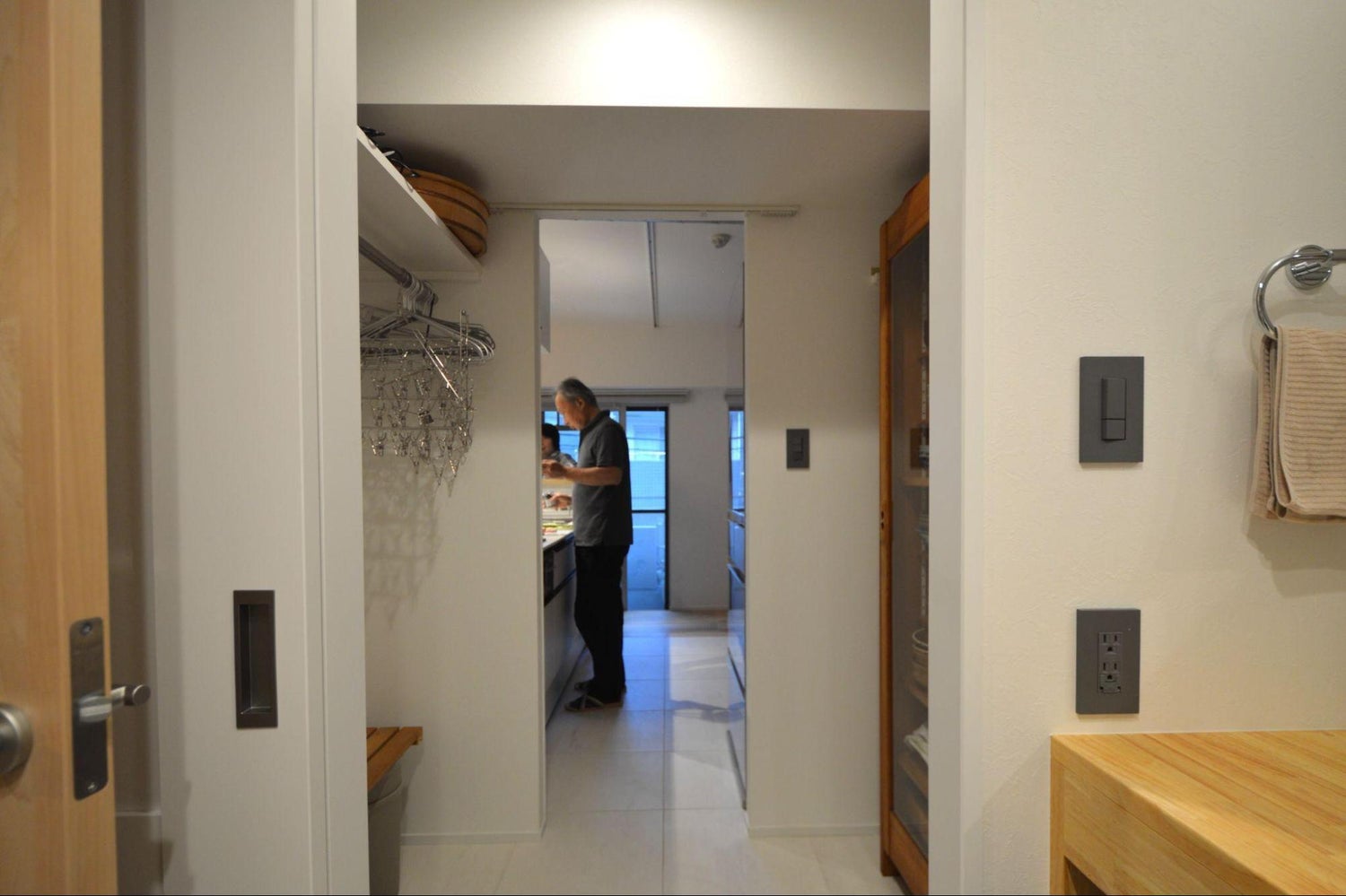 ▲洗面とキッチンの間にウォークスルークローゼットがある。Uさんは片側に食器棚を置いてパントリー的にも使われていた