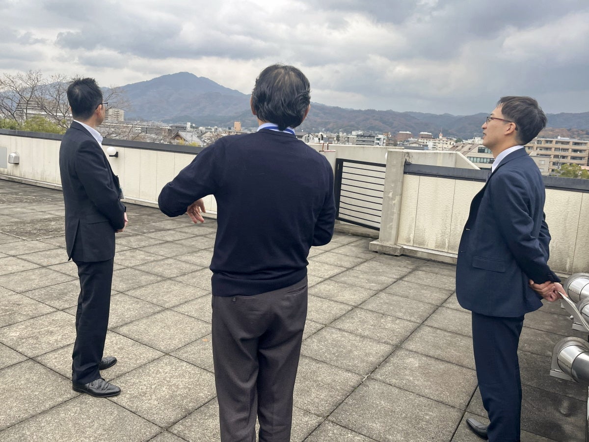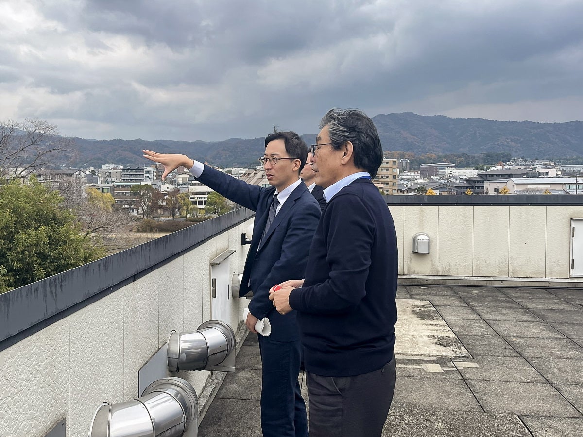 京都市内が一望できる屋上にもおじゃましました。「コロナ禍で中断してしまったようですが、五山の送り火の日には入居者が集まって、この屋上で懇親会も開催されていたみたいですね。」と小関さん。京都大学吉田キャンパスや京都府立医科大学にも近いこの施設は共同研究拠点でもあり、まさにイノベーションが数多く生まれる、京都の「共創」の場所にふさわしい景色です。