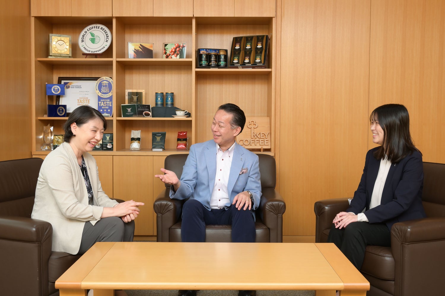 2025年に創業105周年を迎えたキーコーヒー。大正・昭和・平成、そして令和へとつないできた喫茶文化への想いやコーヒーの魅力について、代表取締役社長の柴田と秘書広報部・広報チームの社員がディスカッション。若年層に向けて喫茶文化を訴求する新しい企画が立ち上がりました。