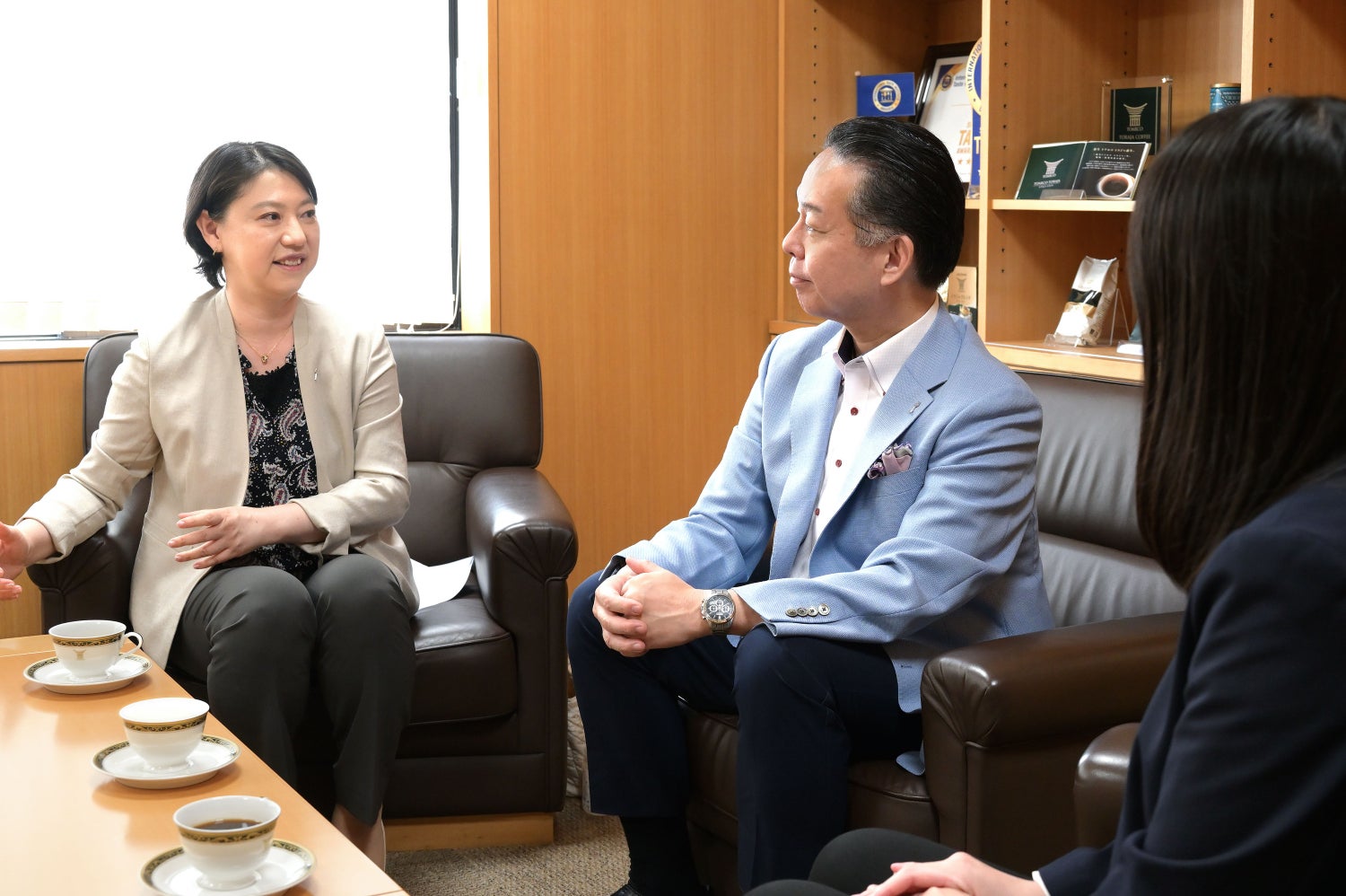 秘書広報部長 木村 素子、代表取締役社長 柴田 裕、秘書広報部 広報チーム 主任 岡田 理佳