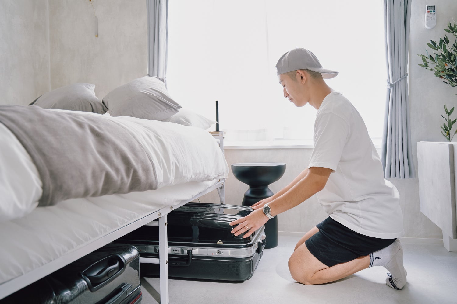 LLサイズのキャリーバッグでも余裕をもって収納できるよう、ベッド下には十分な空間を確保。