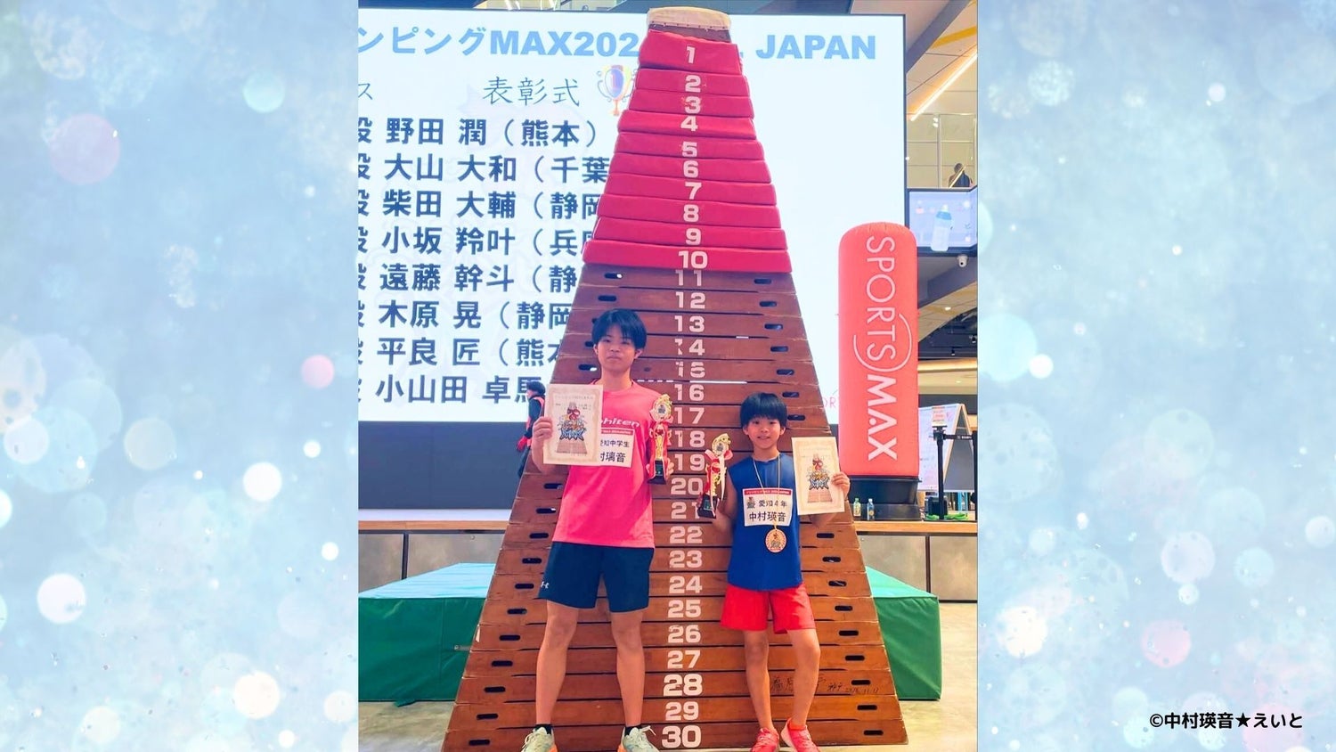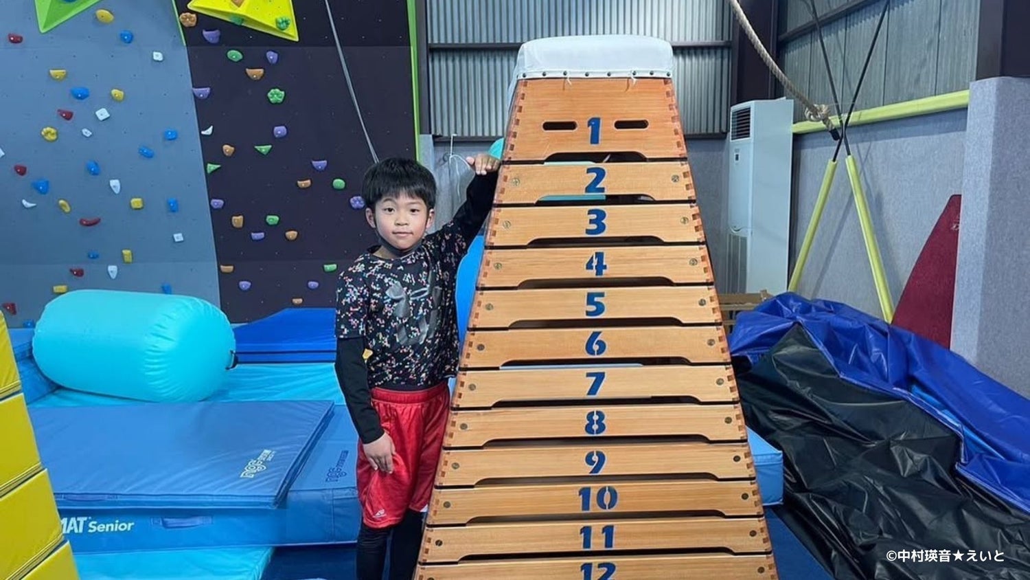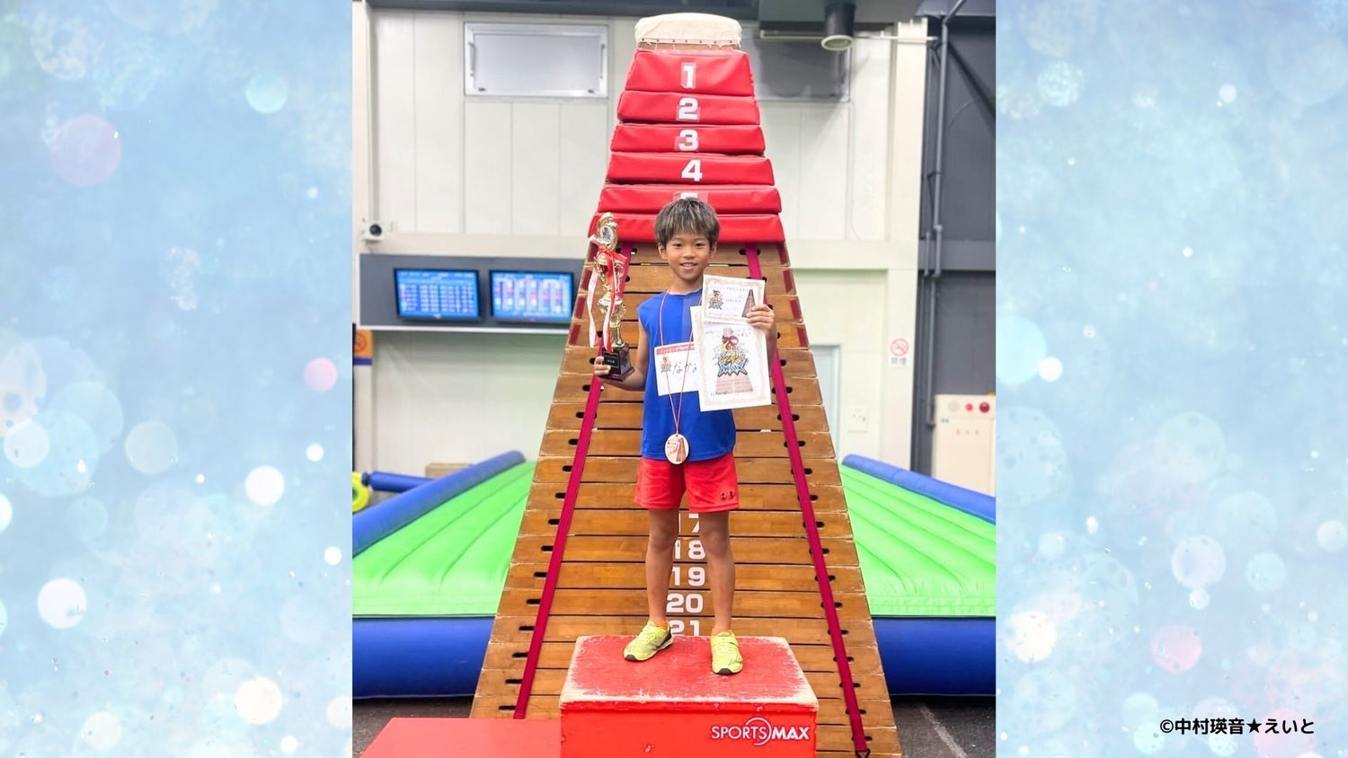 瑛音くんが初めて「ジャンピングマックス」に挑戦したのは2023年。日本一決定戦では、19段(高さ2m10cm)をクリアし、小学3年生の日本タイ記録を残しました。そして、翌年にはさらに記録を更新し、21段(高さ2m30cm)を跳び超え、小学4年生の日本新記録を打ち立てます。