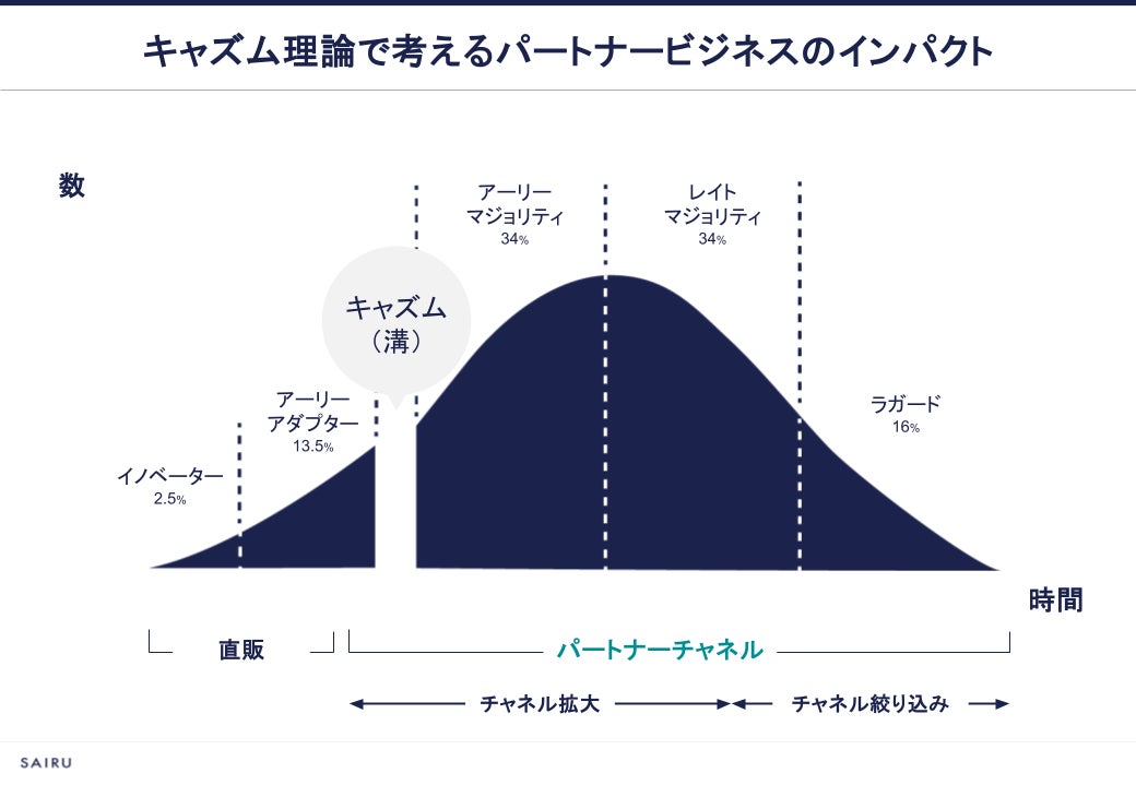 パートナービジネスの本質的な価値は、「直販ではどうしても届かない市場」へのアクセス権を得られることにあります。マーケティング理論で言う「キャズム(普及の溝)」を超えて、マジョリティ層にリーチするためには、すでにその市場で信頼を得ているパートナーの力が不可欠だからです。