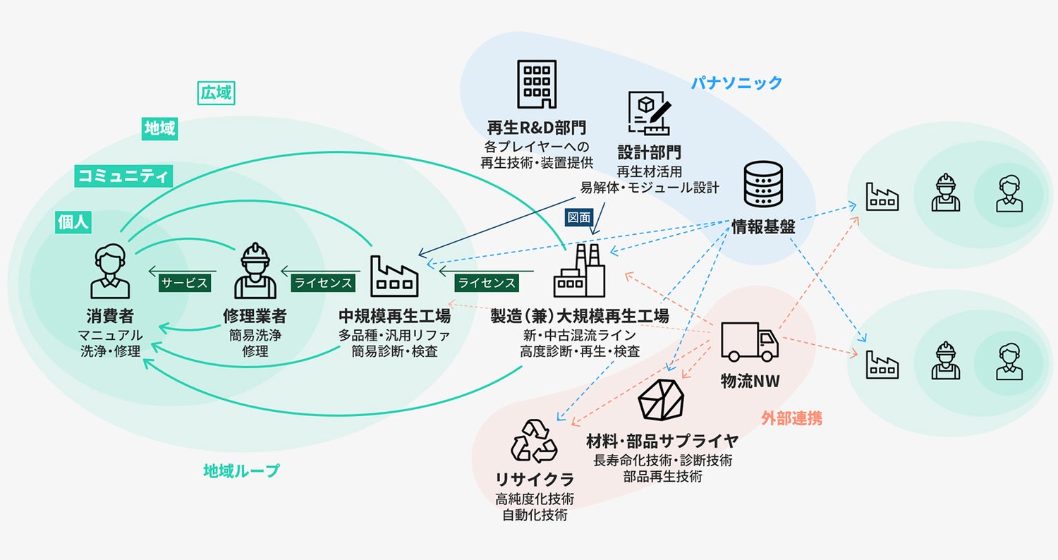 その目指す社会の具体像の一つとしてMI本部が構想しているのが、個人、コミュニティ、地域、広域がへと広がる各レイヤーが、それぞれの役割を担いながらモノの創生や再生を循環させていくサーキュラーエコノミーの仕組みだ。