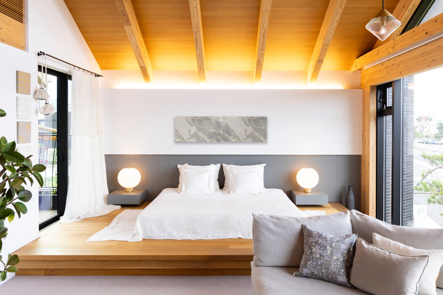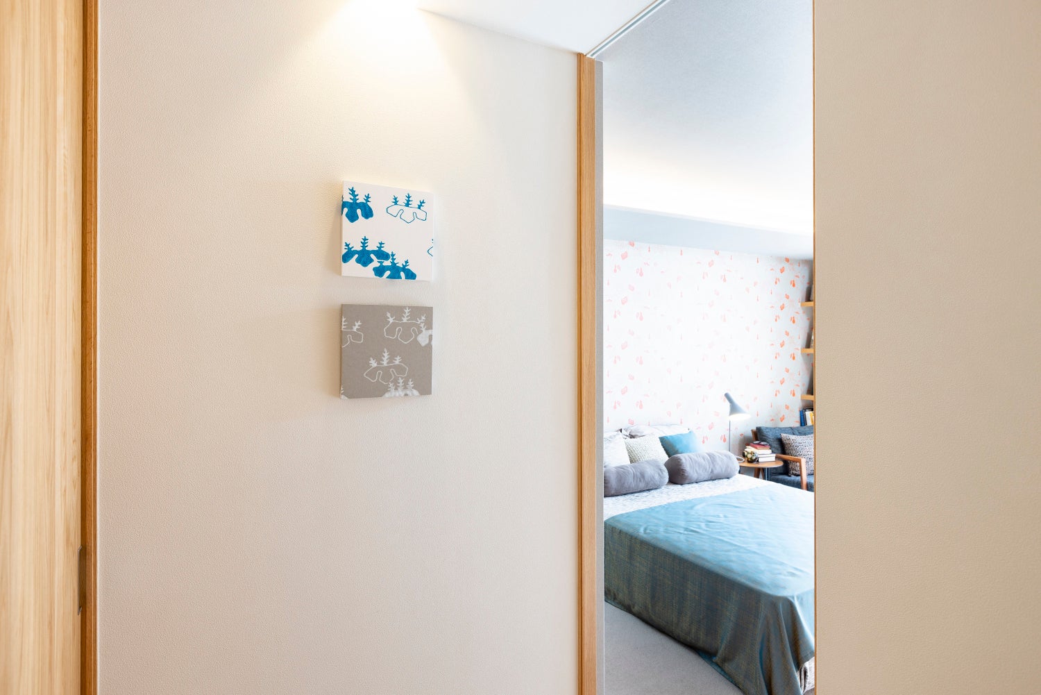 第2弾で発売した西陣織アートパネル(枕の上の壁に設置)と