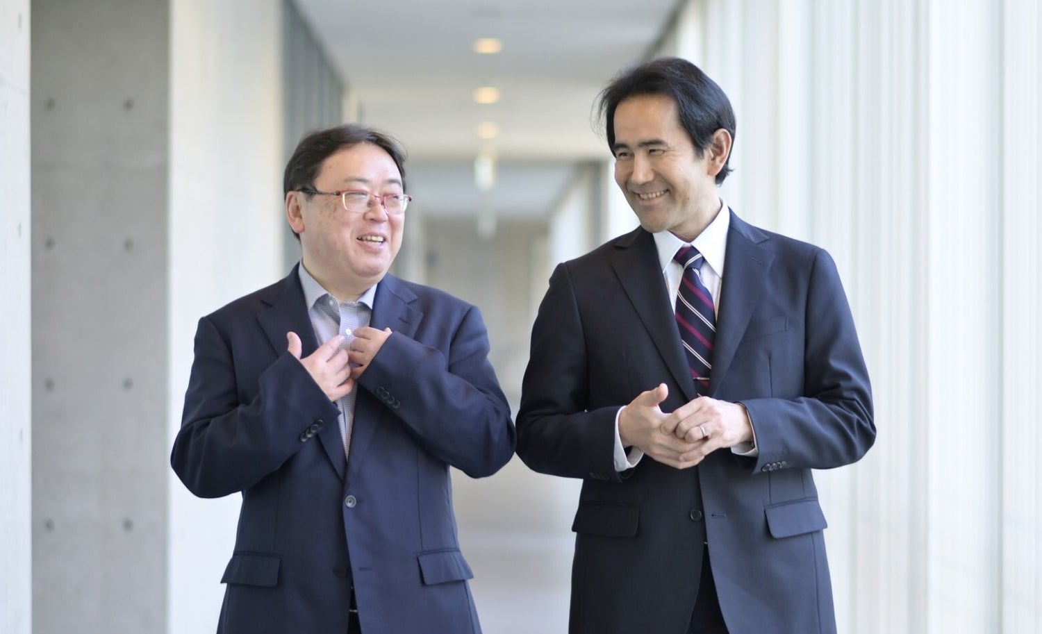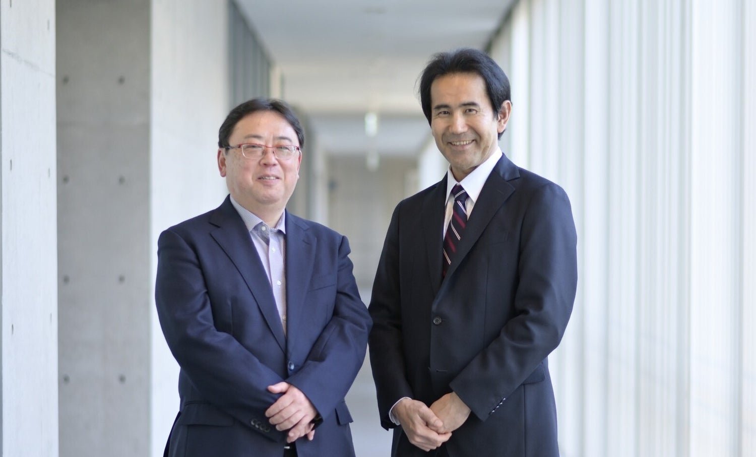 アイシンの井上慎介部長(左)と東京大学物性研究所の原田慈久教授