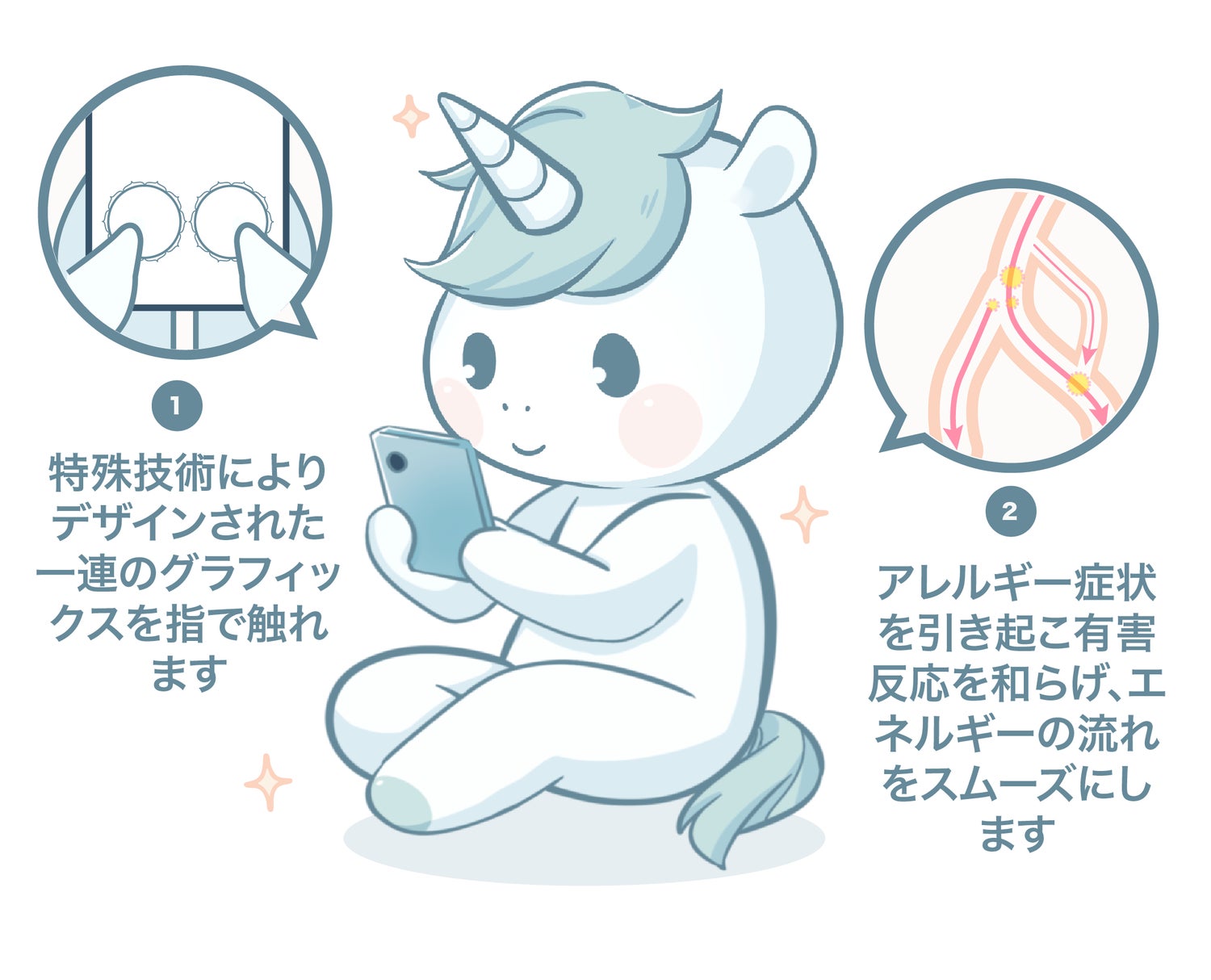 花粉による不快感への一般的なアプローチである“薬“ではなく、新たな選択肢として、スマートフォンの画面に左右の指を触れるだけで、体内のエネルギーのバランスを整え、花粉による不快な症状にアプローチする、完全無料のセルフケアプログラムとなっています。