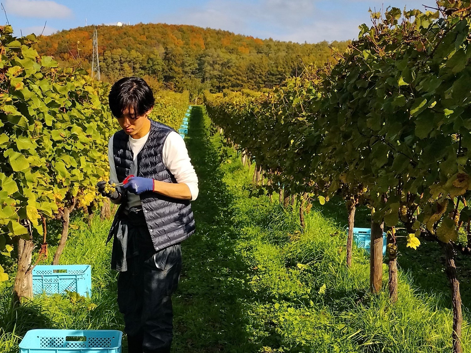 時には、ワイン用のブドウの収穫の手伝いも