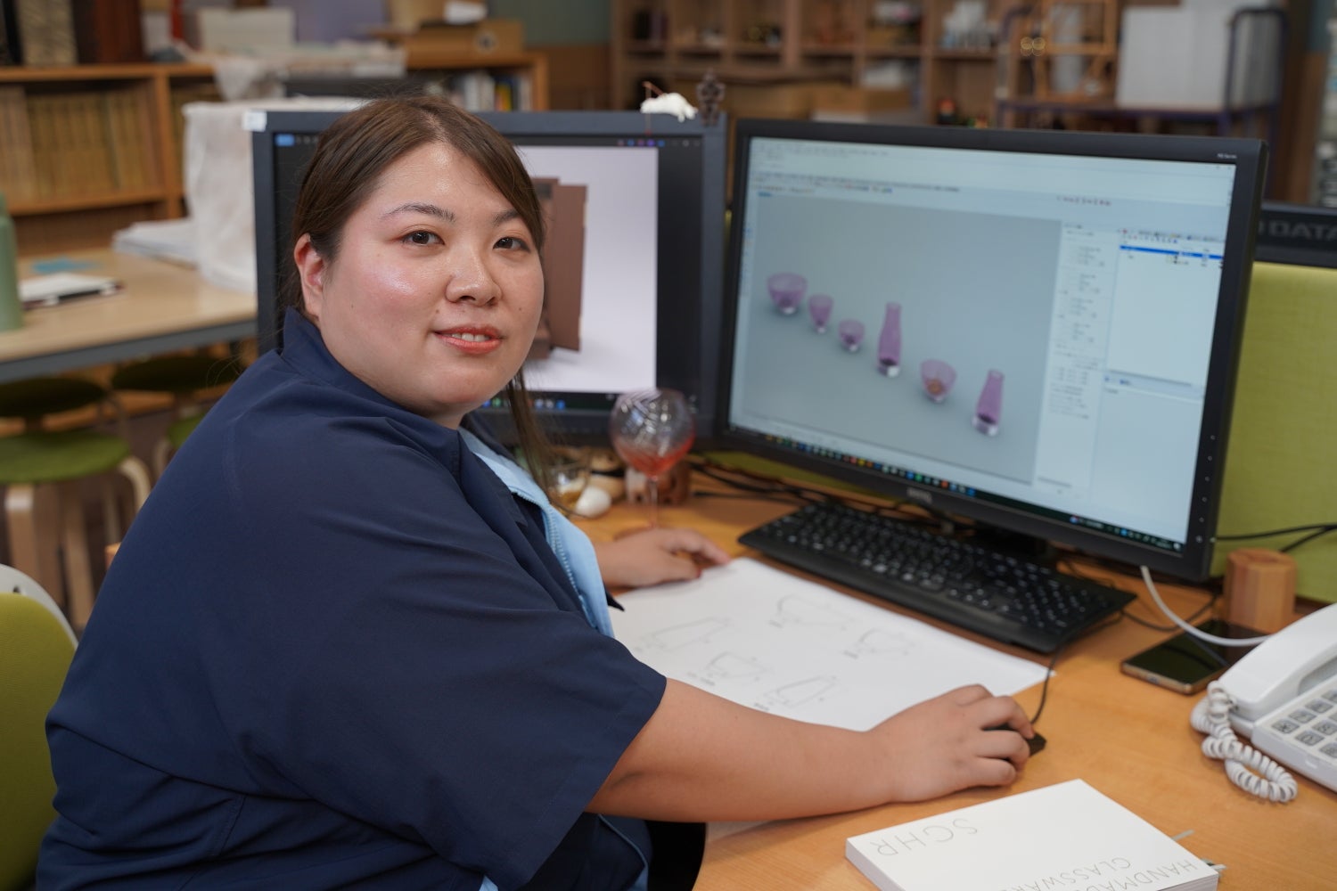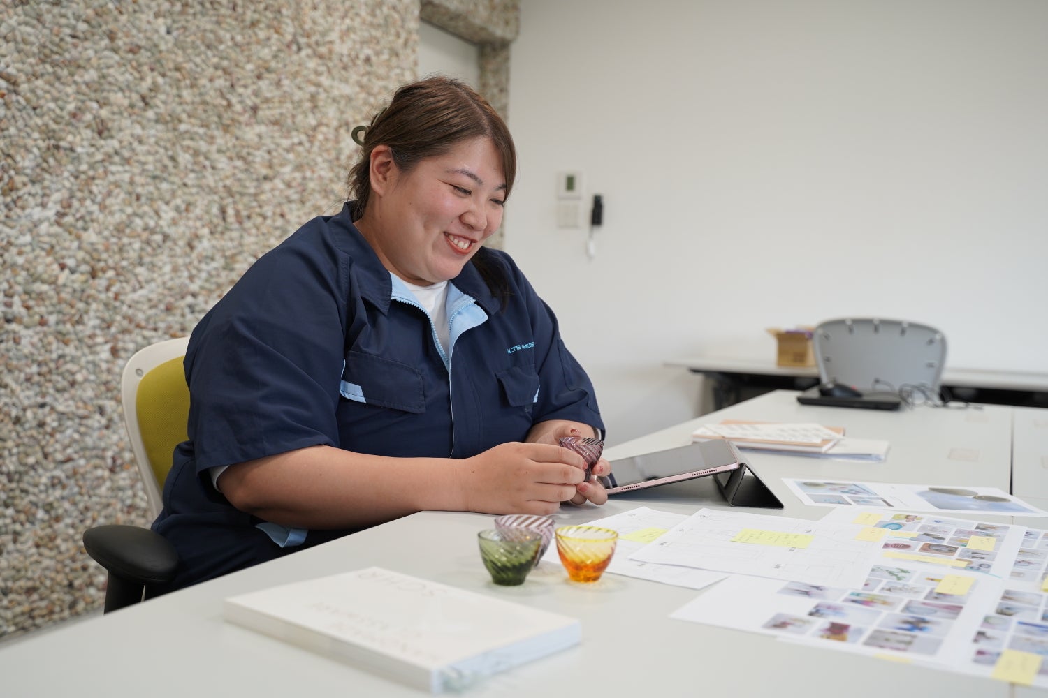 Sghrさんと開発するお話いただいたとき、とても嬉しくて。開発に異動したころ、『日本工芸産地博覧会2022』にスタッフとして参加した際、近くのブースにSghrさんも出展されていて「きれいなプロダクト作るところなんだな」と、深く印象に残っていました。ガラス製品は元々好きでしたが、まさかお仏壇の会社でガラス製品の開発に携われるとは思わなかったです。