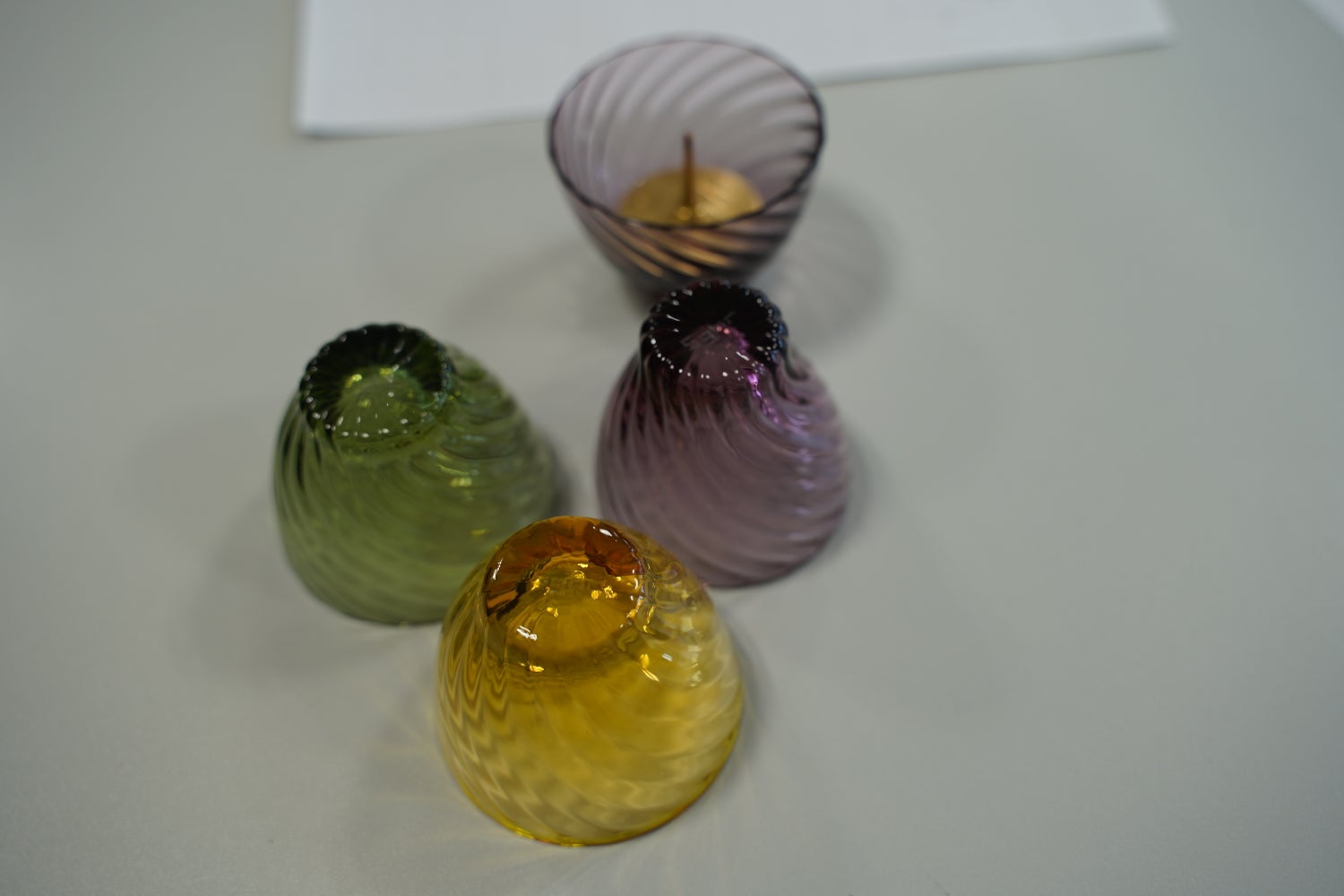 ガラス素材の完成品は硬く透けている素材だけれども、1000度以上の高温で溶かして形作っているときは、とても柔らかい。その特徴を生かし、今回いただいた「あまり(香炉に残る線香が)見えすぎない」という課題点を‟ラインを入れてねじる”という方法によって、使い勝手と見た目のきれいさを叶えました。それはガラスが柔らかいからこそできることでもあります。