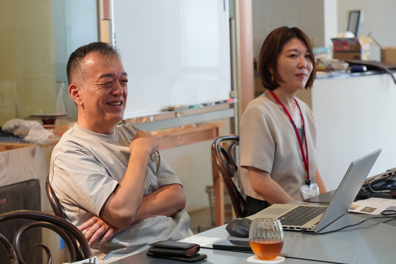 共同制作から生まれた製品のストーリーを、前半は菅原工芸硝子の菅原裕輔社長から、後半は当社アルテマイスターの開発部、石川由萌さんからお聞きしました。