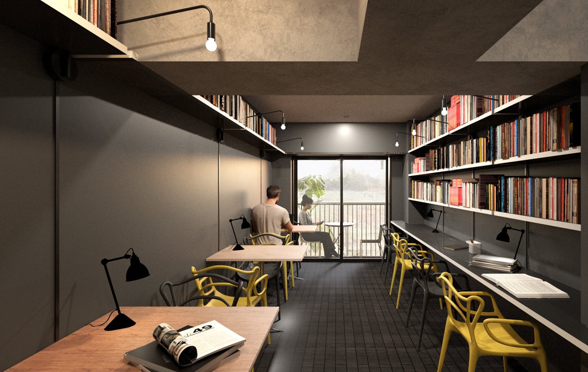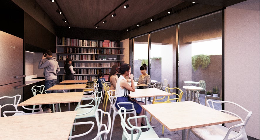 2 階にはライブラリー、スタディエリア、ランドリースペースなどの入居者のための共用空間が備わっており、そのほかは個室で構成。実験的にさまざまな事に挑戦することが出来る、『用途自由・変幻自在』な余白のある空間。