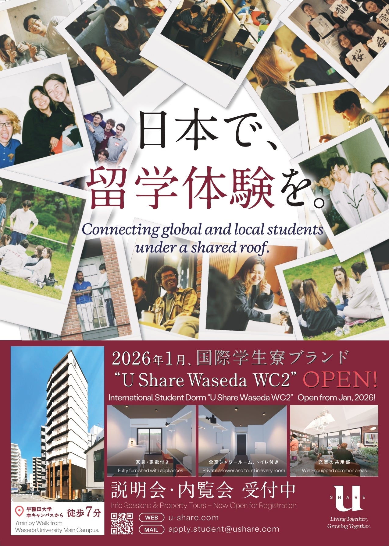 - U Share Waseda WC2: 2026年1月オープン。現在、合格前予約および内覧会を優先受付中です。