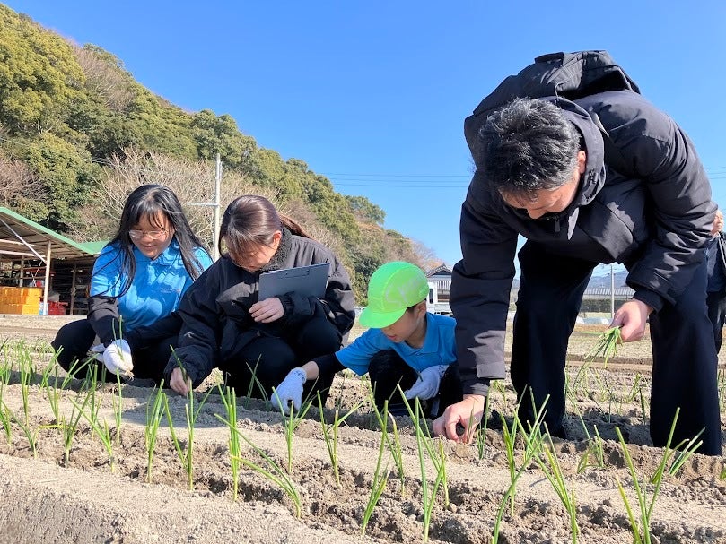 玉ねぎに関する仕事を体験するこども達と徳永氏