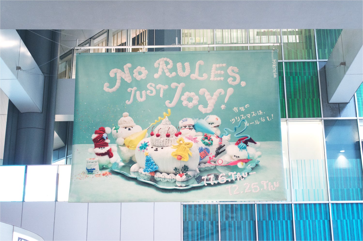 今年の渋谷ヒカリエのクリスマスは、施設全体でHikariELFの世界観を体験できる仕掛けを多数用意しました。7階に設置しているメインのフォトスポットは、11月と12月で展示内容を変更します。11月は巨大チョコペンでHikariELFと一緒にデコレーションを仕上げていく写真が撮影でき、12月は展示しているホッペの「しっぽ」を触る体験ができるワクワク感を創出し、HikariELFの世界観をたっぷり感じていただけます。そのほか、「統括部長」がクリームの絞り袋を手に、今年のキービジュアルでもある『ホッペのブッシュドノエル』を制作している様子を表現したり、おしゃれ番長「キーキー」が、食いしん坊の「ホッペ」にデコレーションを施したり…「NO RULES,JUST JOY “ルールなんていらない、ただただ楽しもう!”」というテーマをもとに、施設内を巡りたくなるフォトスポットを随所に散りばめています。