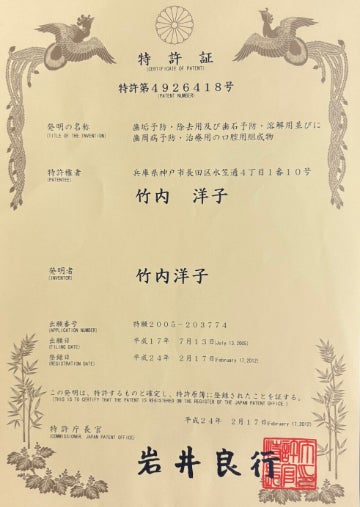 その後、洋子さんは知り合いのつてで健康食品の社長に歯周病予防ケアの商品づくりを相談。その過程で、その社長に「他にはない商品だから」と促され、特許を取得。2007年、口腔ケア用品の商品化にこぎつけた。