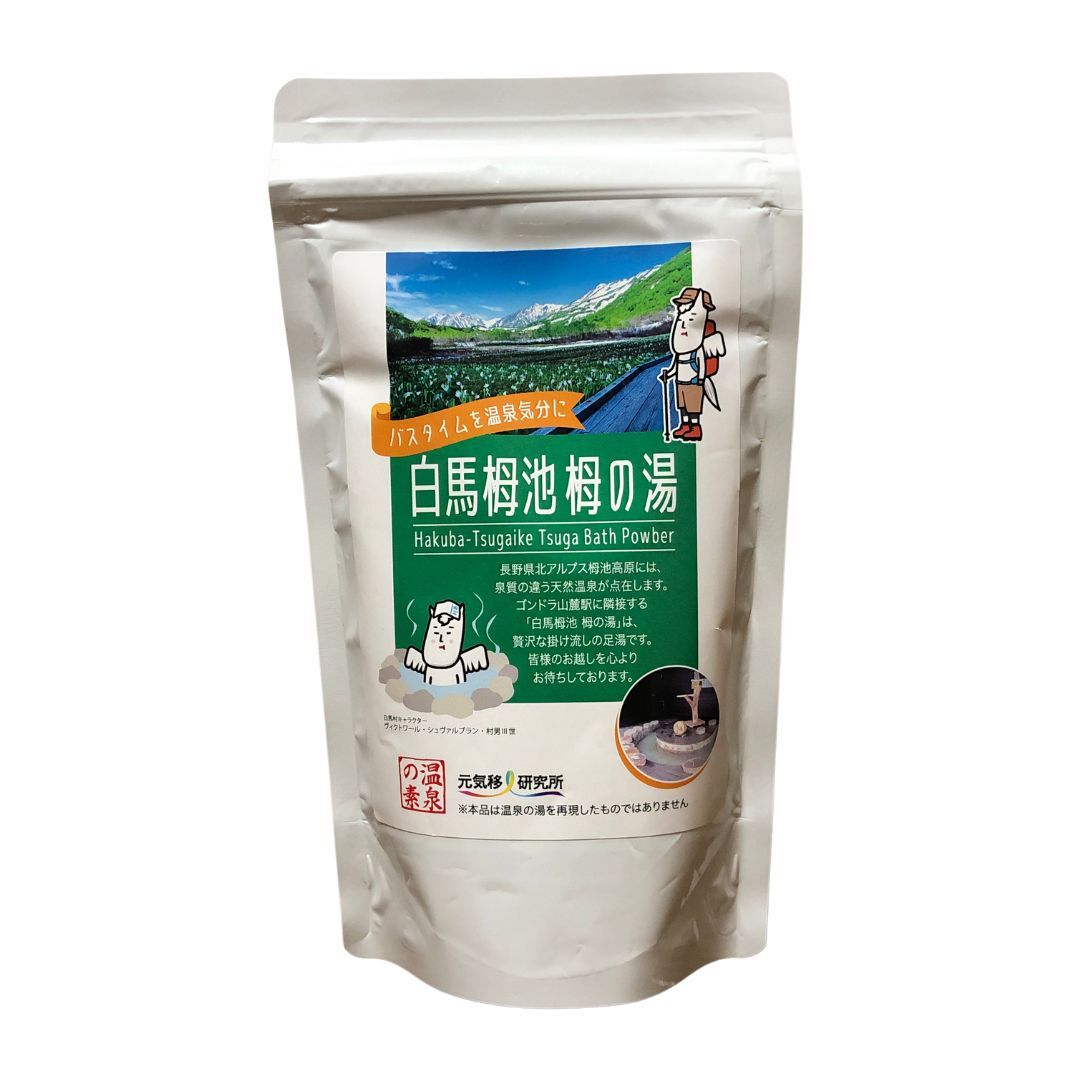 長野県・小谷村白馬栂池には、かつて濁り湯アルカリ泉の『栂の湯』という温泉施設がありました。現在、足湯のみが残り温泉施設はありませんが、入浴剤として復活させました。