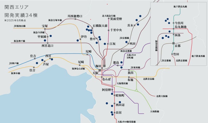 新社会人や学生を中心とした若年層を主なターゲットに据えたことも、関西における特徴の一つです。具体的には、大阪市内をはじめ、池田市(阪急電鉄「石橋阪大前」駅周辺)や京都市内といた、通勤・通学の利便性が高く、かつ一定のブランド力を持つエリアを重視しています。こうした立地は安定して高い賃料設定が可能であり、投資家の方々からも高い関心を寄せられることが期待されます。