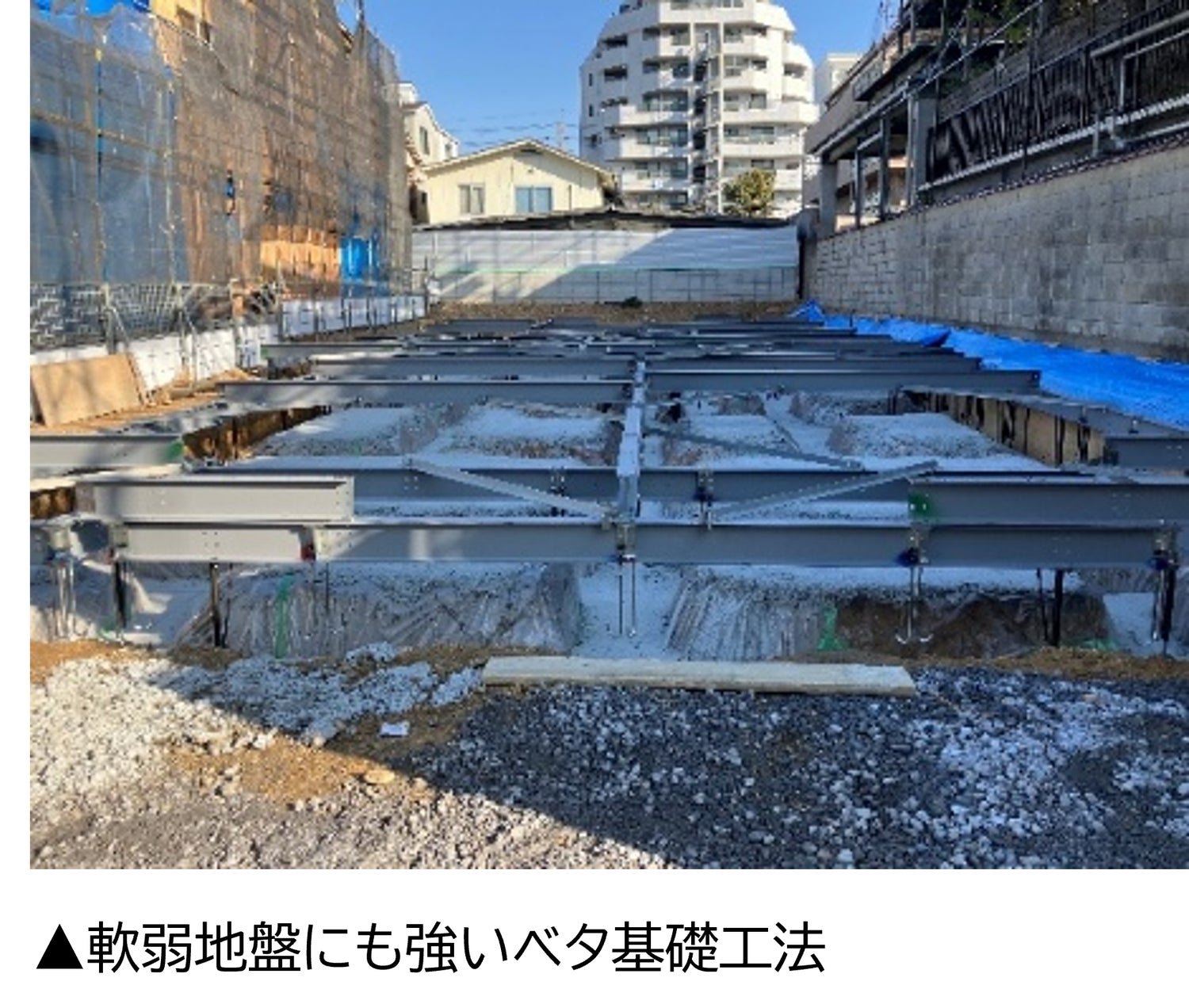 」での施工が可能です。これにより、地盤補強にかかるコストを低減できています。