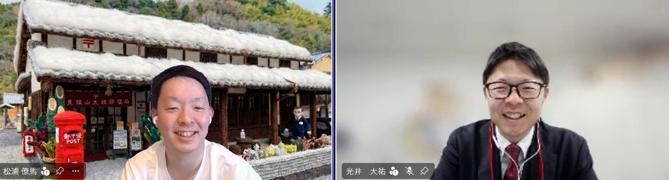 - 日本郵政株式会社 地域共創事業部 自治体連携事業室 一般社団法人石見銀山みらいコンソーシアム駐在 松浦 僚馬(画像内左)