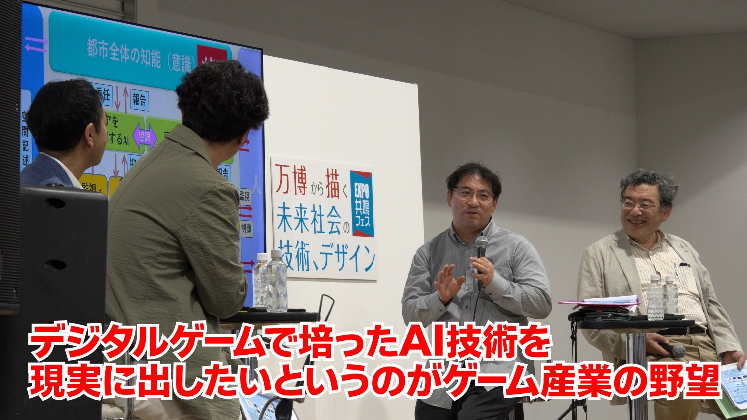 2025年6月、大阪・関西万博のシグネチャーイベント・EXPO共鳴フェスで、「もしも、相棒がロボットだったら、どんな未来を描きますか」(主催:京都橘大学)が開催されました。ファシリテーターは、あの人気お笑いタレント、よゐこの有野晋哉さんです!AI研究のパイオニア、京都橘大学の松原仁教授、ゲーム業界でAI研究をリードするスクウェア・エニックスの三宅陽一郎さん、そして、オムロンの技術革新をリードする諏訪正樹技術・知財本部長とともに、AIロボティクスの未来を語り合いました。