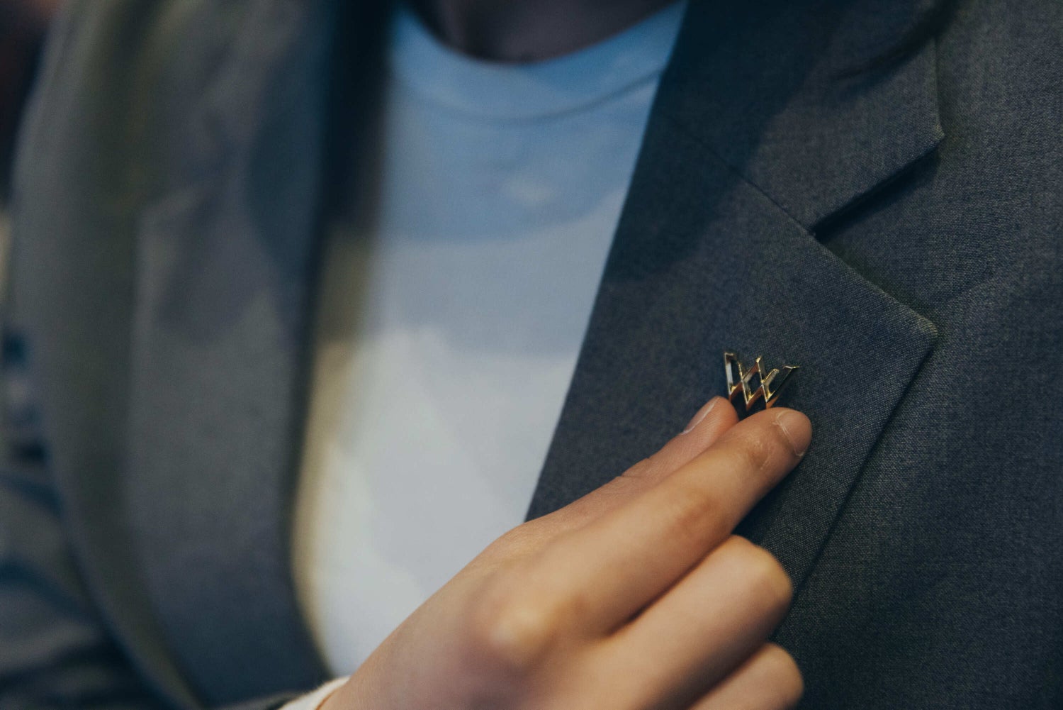 そしてこの日、社員全員に金色の社章が手渡されました。「サンクスクラウン」を立体的にデザインしたそのバッジを身につけた社員たちの表情が、この日の会場でもっとも印象的な瞬間でした。