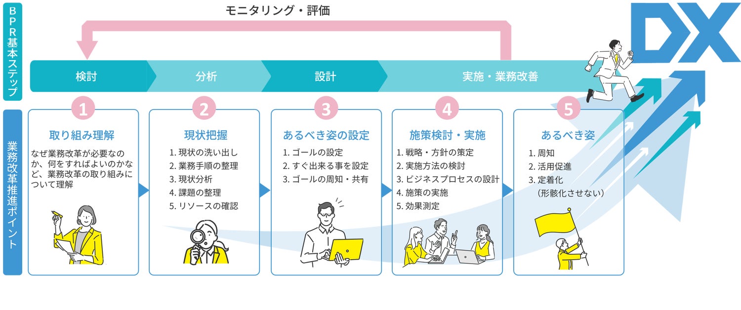 現状把握、業務課題を可視化することで、DXをスムーズに進めるためにどこから手を付ければいいのかという問題が見えてきます。DXに大規模なシステムは必ずしも必要ではありません。システムを導入しなくても、業務プロセスや人員の配置を見直すだけで効率化できる領域もあります。重要なのは、必要な領域に必要な投資を行うことです。