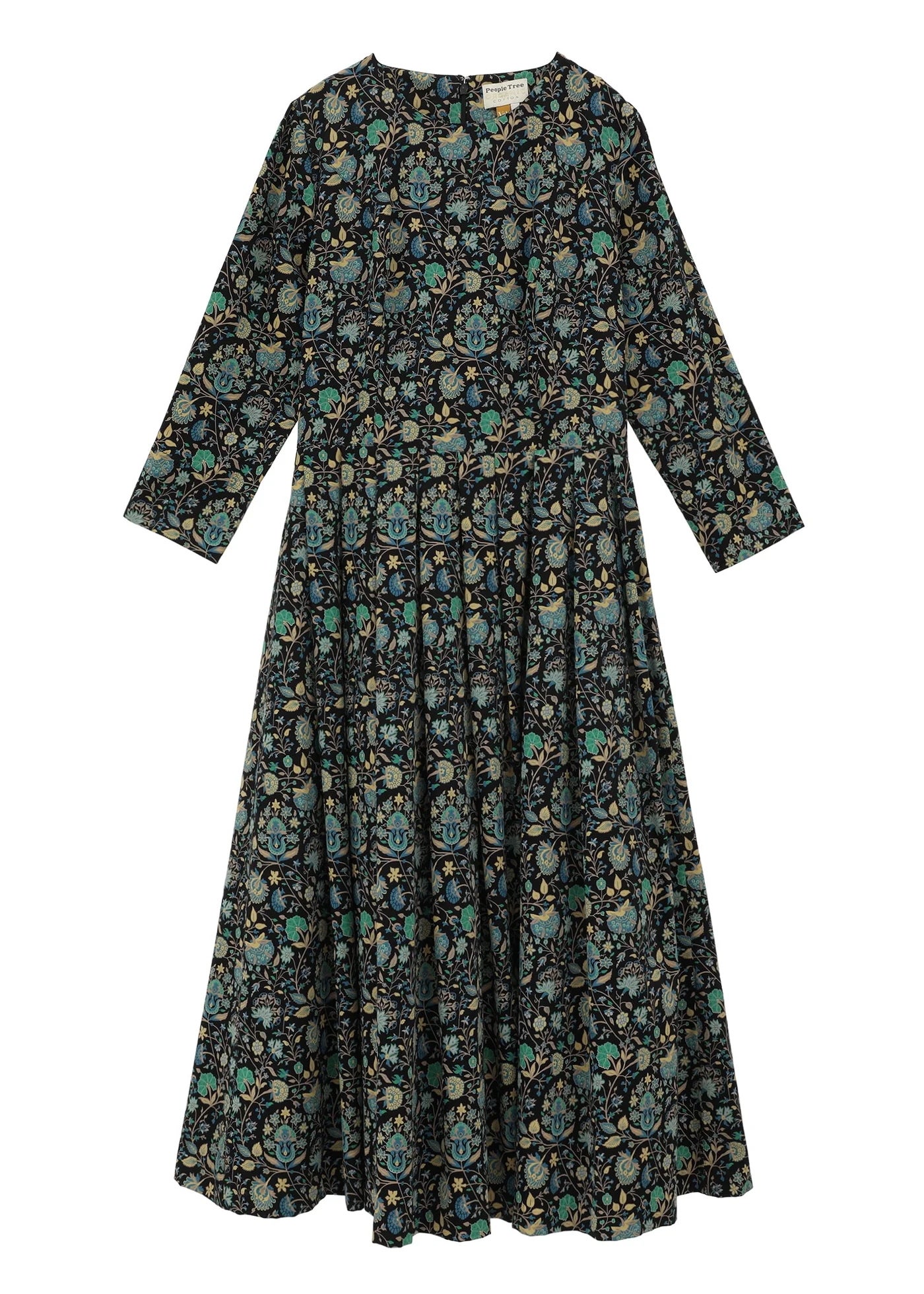 V&A オーガニックコットンサテンミディドレス〈ヤスミン柄〉