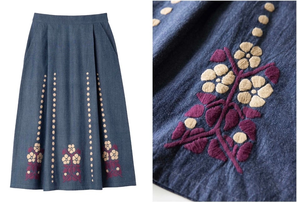 V&A 手織りオーガニックコットン コレット柄 手刺繍スカート