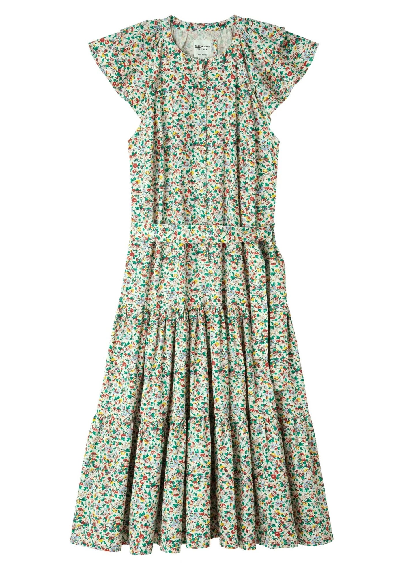 V&A オーガニックコットンサテン フリルドレス〈マージー柄〉