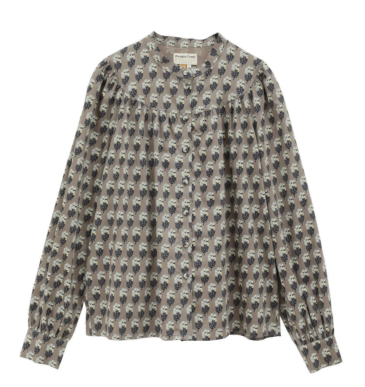 V&A オーガニックコットンサテン ギャザーブラウス〈エスター柄〉