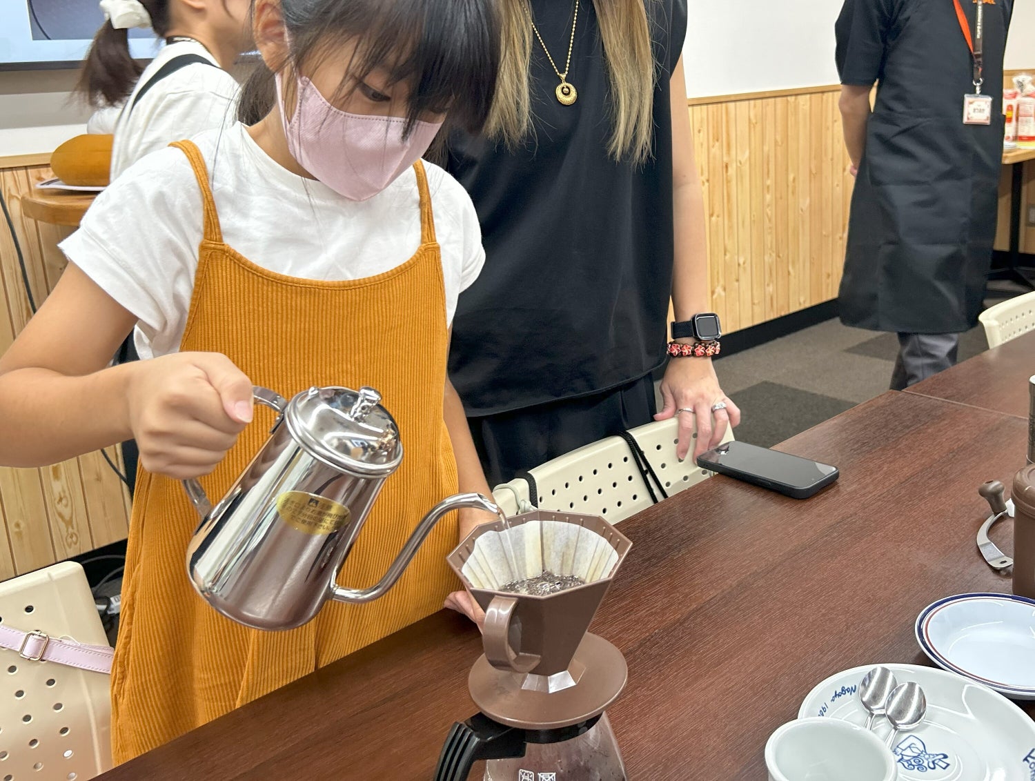 コメダスタッフの案内のもと、コーヒーができるまでや、淹れ方を学びながら、実際に「ファーストコーヒー」体験をしました。