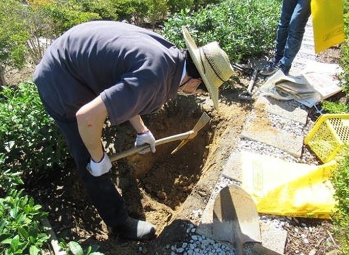 本来なら1メートルは深く伸びるはずのチャノキの根が、わずか「20センチ」で成長が止まっていたのです。その下には、2018年の工事で取り切れなかったコンクリートの残骸と、カチカチに固まった粘土層が、壁のように立ちはだかっていました。