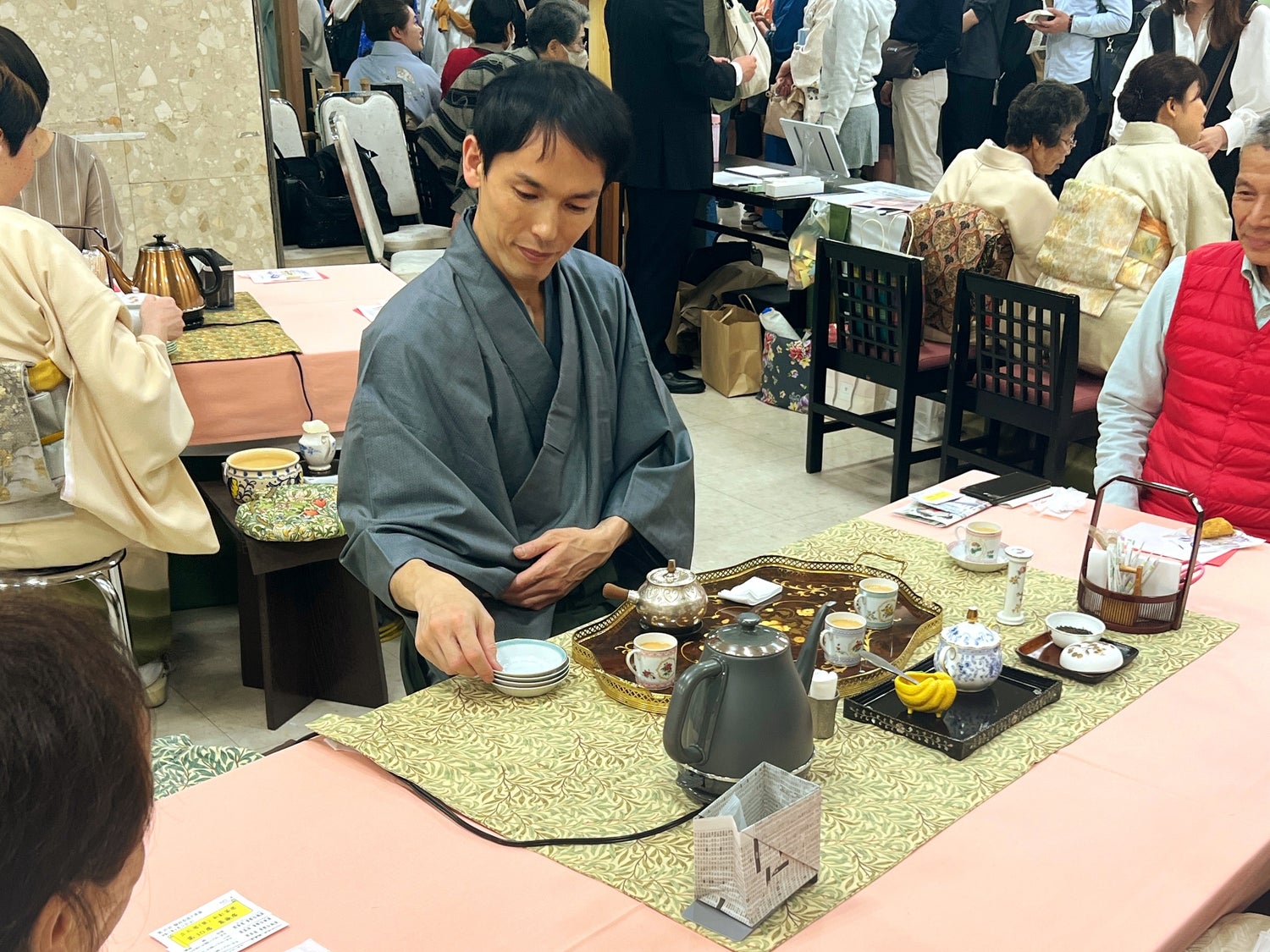静岡伊勢丹で開催された茶会にて、和紅茶点前をしている様子