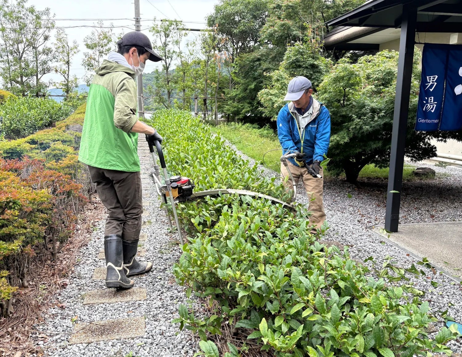 フロントのスタッフも、レストランのスタッフも、1時間のシフトを「茶守り」の時間として確保し、作業着に着替えて畑に入ります。