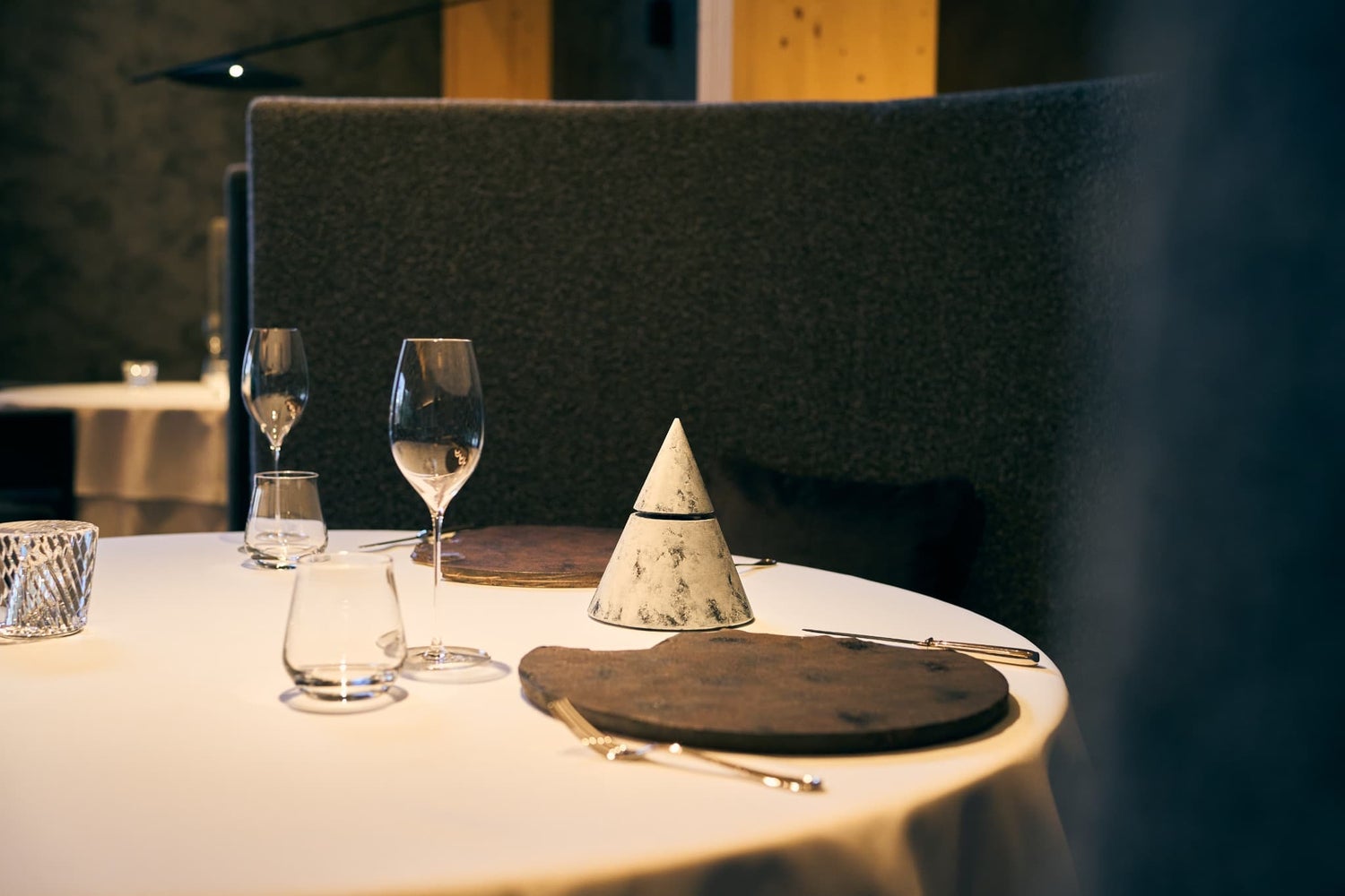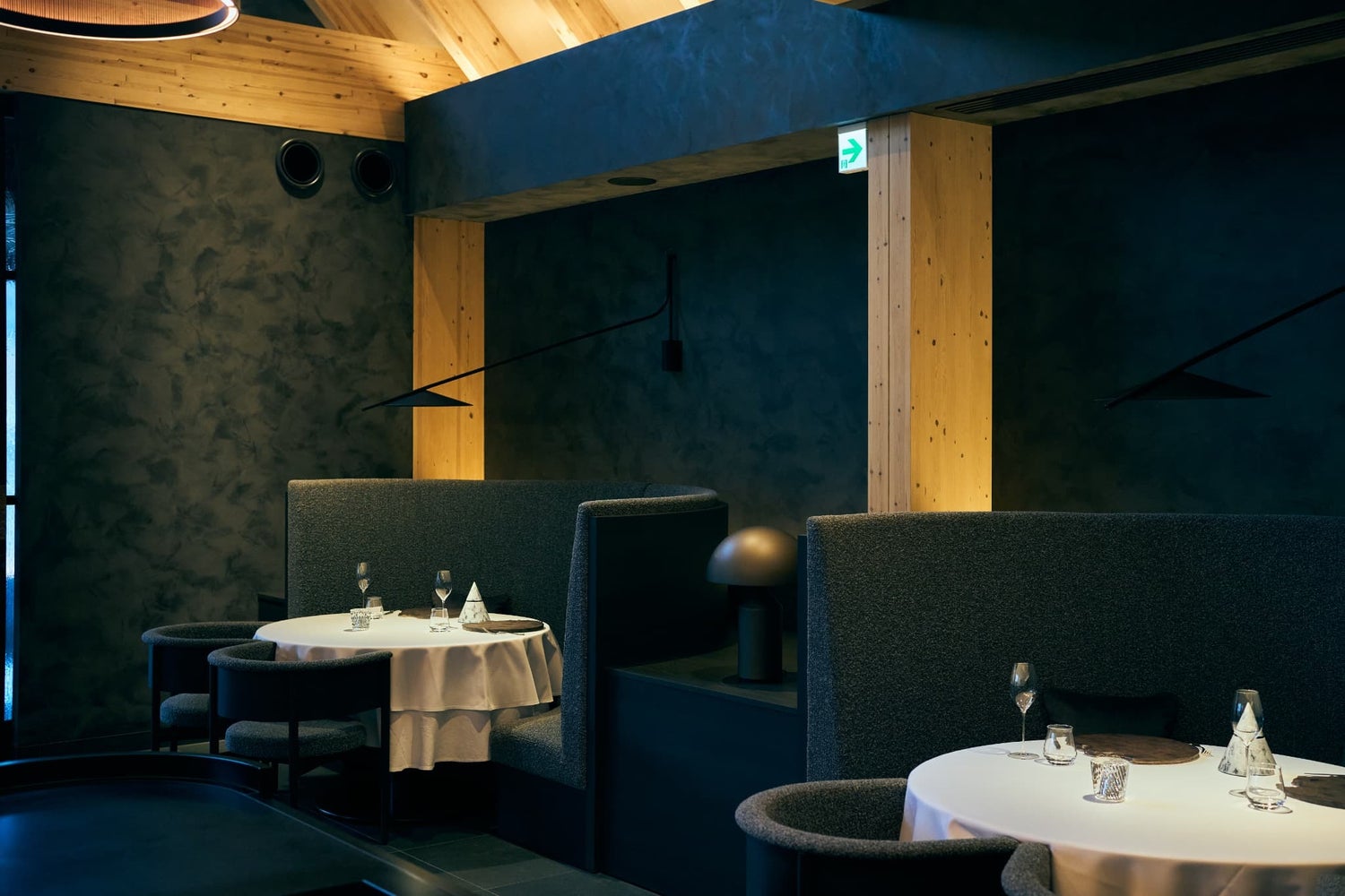 インテリアを担当したマルイユも、削ぎ落としつつもレストランという非日常空間をどう演出するか、設計と同じ方向を向きながら考え続けた。