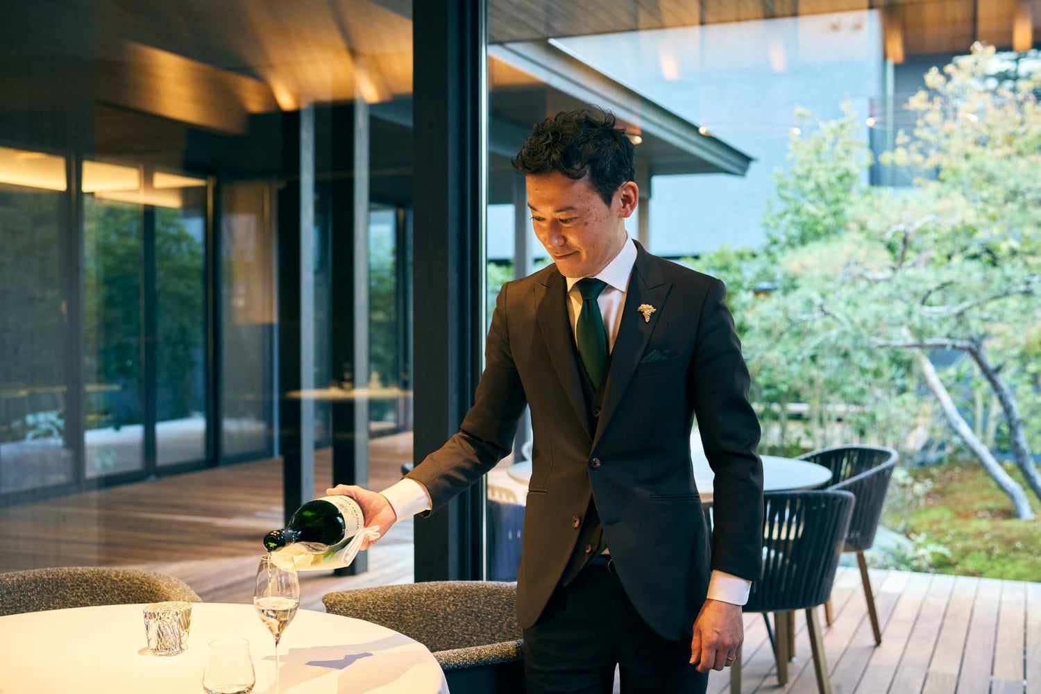 L’inflexionの支配人、戸田健太郎さん。「ダイニングに入る前に多くのお客様が足を止めて空間を見渡し、思わず息をのむような表情を浮かべ、感動を口にします。そういうタイミングがあるのもこのレストラン独自の経験なのかなと思います」