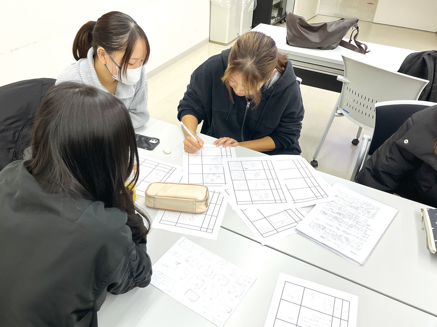 梅花女子大学の学生は、障がいのあるウイルハーツ社員に対して仕事中どのような時に負担を感じるか等のヒアリングを行い、その内容をもとに動画の素材となる絵コンテの制作に挑戦しました。