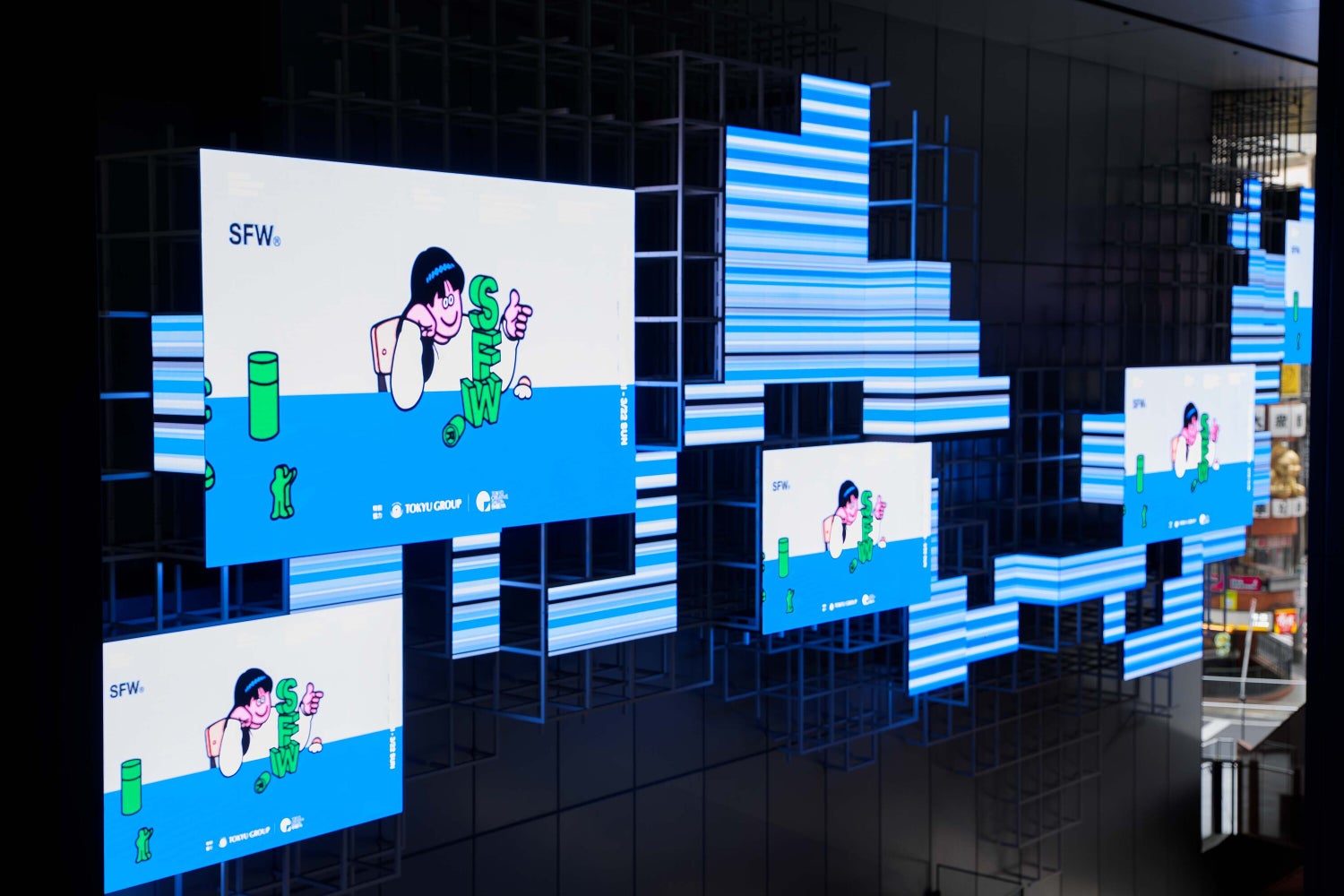 広告的というよりはアート的に作りたいと思いました。だから Face さんの世界観と渋谷ファッションウィークを分けたくなかった。ロゴすらも、Face さんの世界の中で遊んでほしかったんです。SFW®の積み木も何パターンかあって、もっと遊んでほしいです!ってお伝えして。最終的に縦になりましたが、そのあたりは結構、Face さんに付き合っていただきました。