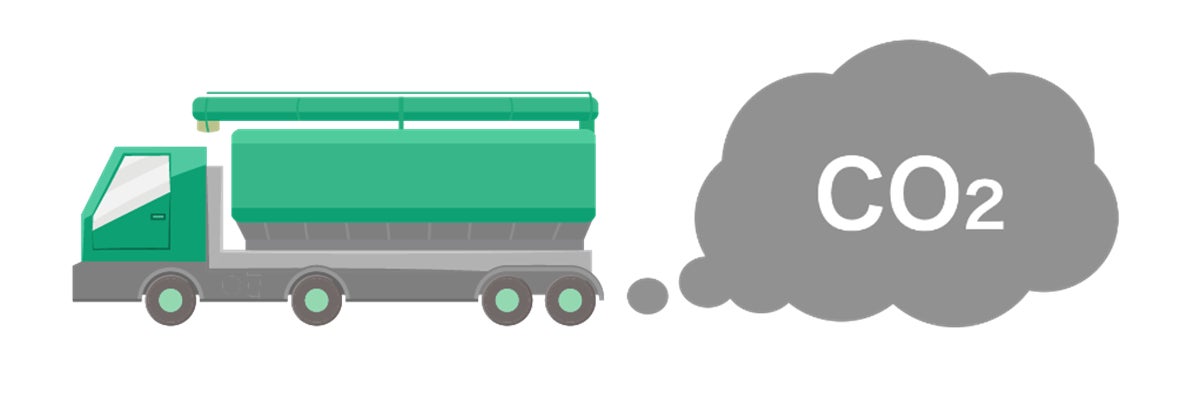 飼料輸送に使われる特殊車両(バルク車/最大積載量8~10トン)1台ごとに発生する環境負荷は決して小さくありません。