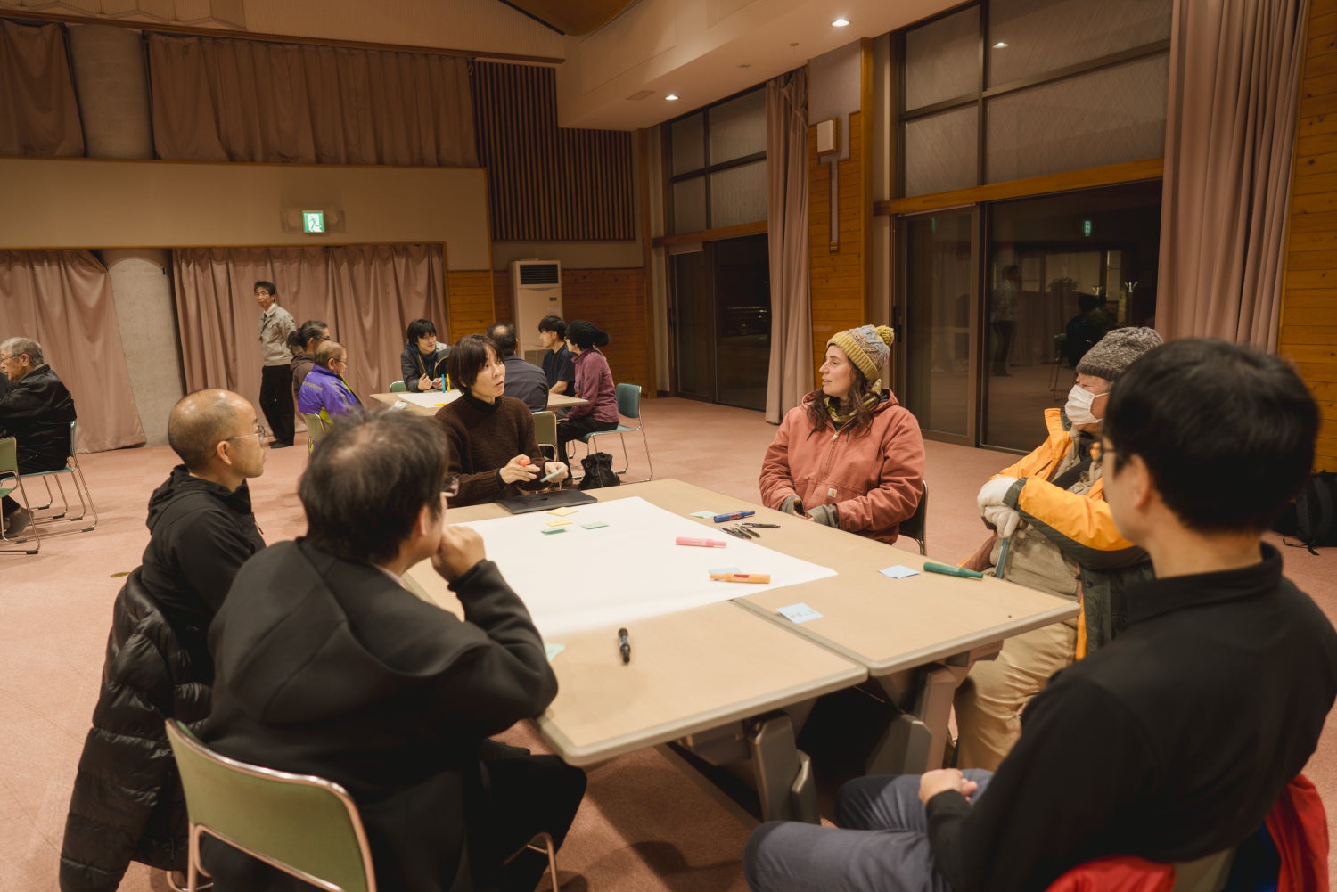 外を歩いて見えてきたこと、内で語り合って浮かび上がってきたこと——その両方が、同じ場所に向かっていました。山で働く林業従事者も、製材所で働く職員も、山主も、役場の担当者も、それぞれが本気で森のことを考えている。ただ、その思いが一つの方向に束ねられていない。語り合う場がなかっただけで、向かいたい方向はそんなに遠くない——。根羽村という小さな村だからこそ、全員が顔見知りで、全員が同じ森を見ている。その強みに改めて目を向け直すことが、現実を打破する可能性として輝いて見えてきました。