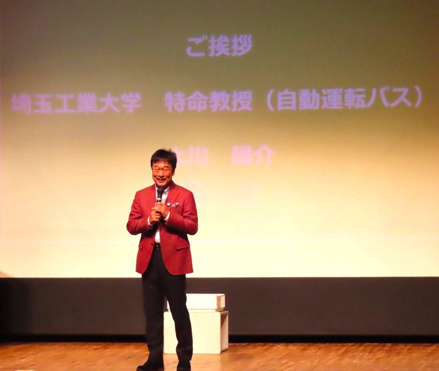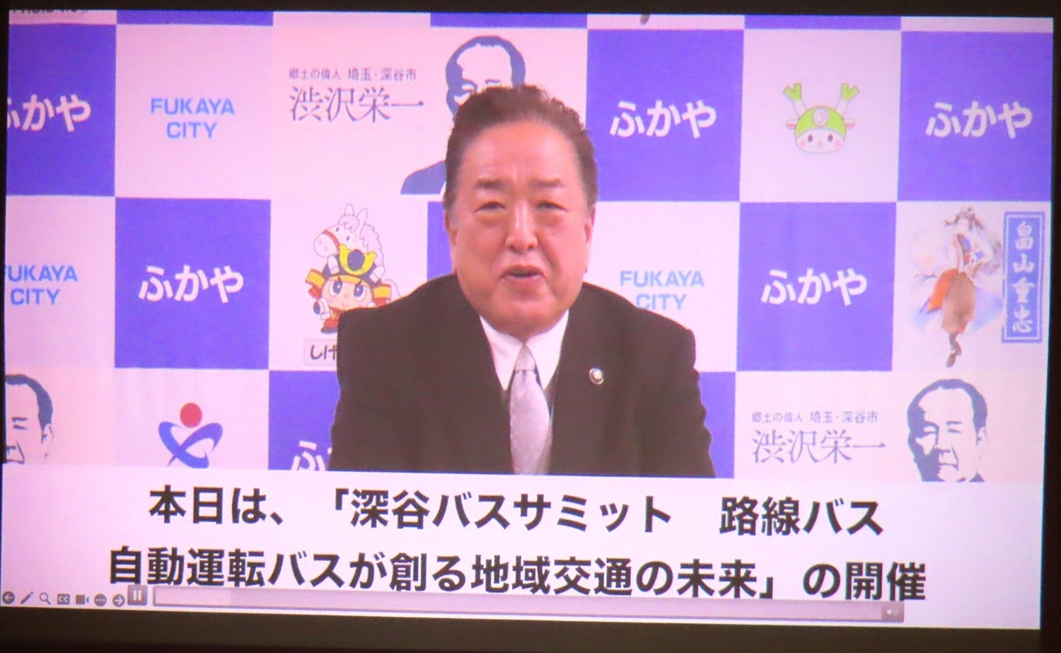 小島市長はビデオメッセージで「公共交通は地域の将来を考える上で欠かせないテーマ」と指摘。地域コミュニティバスに埼玉工大の自動運転バスを他に先駆けて導入したことを誇り、「交通の新たな可能性を切り開く重要な選択肢の一つ」と述べました。
