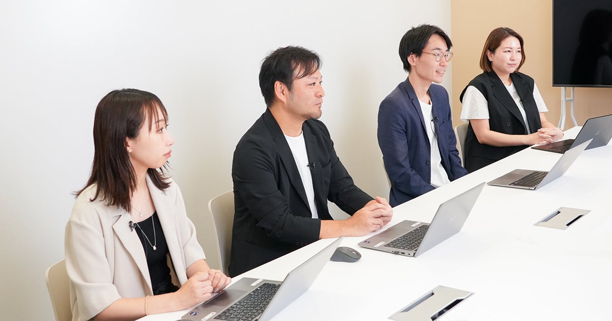 (左から、ブリューアスの藤田様、LINEヤフーの谷口様、当社の杉山、鈴木)