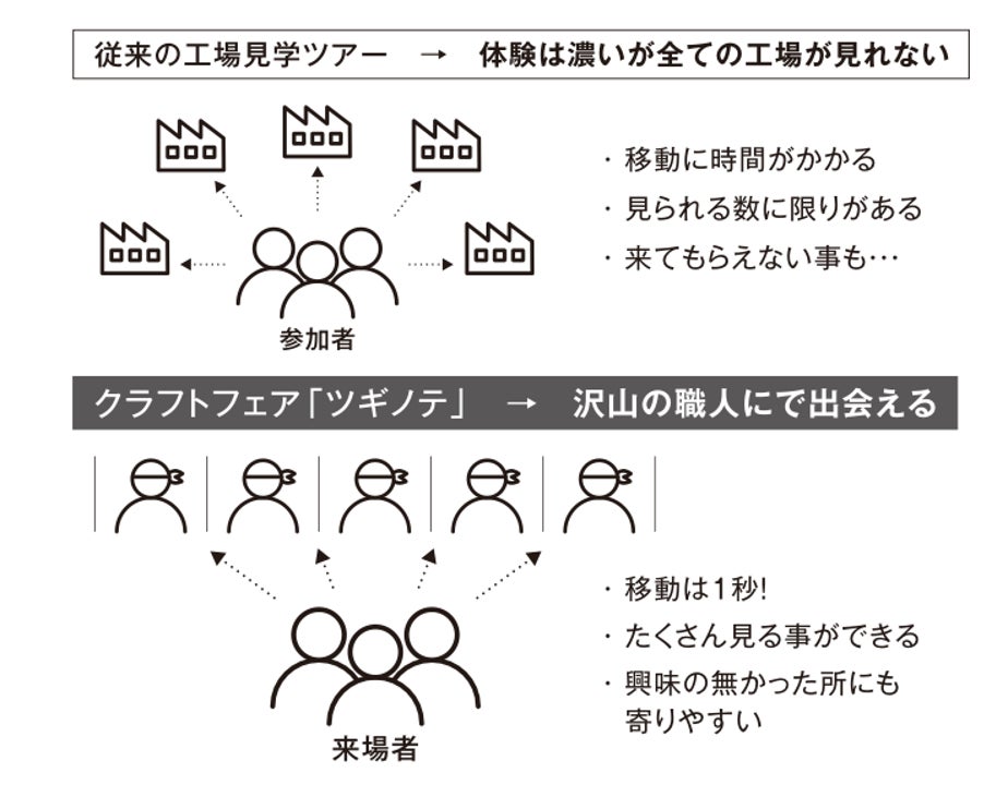 当時まだ「産業観光」という言葉が浸透していなかった時代に、職人が自ら工房を開き、東京からバイヤーやクリエイターを招き入れ、現場での交流を通じて新しい関係を築く試みでした。